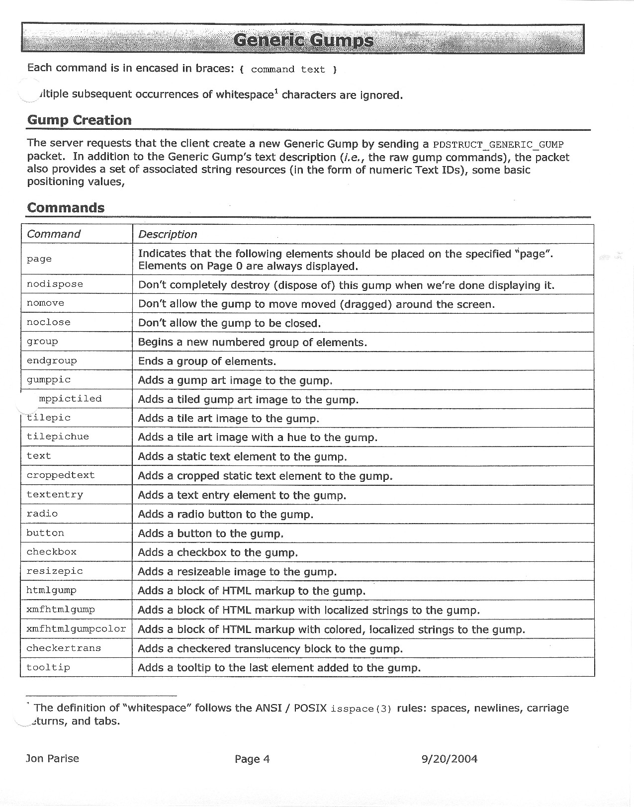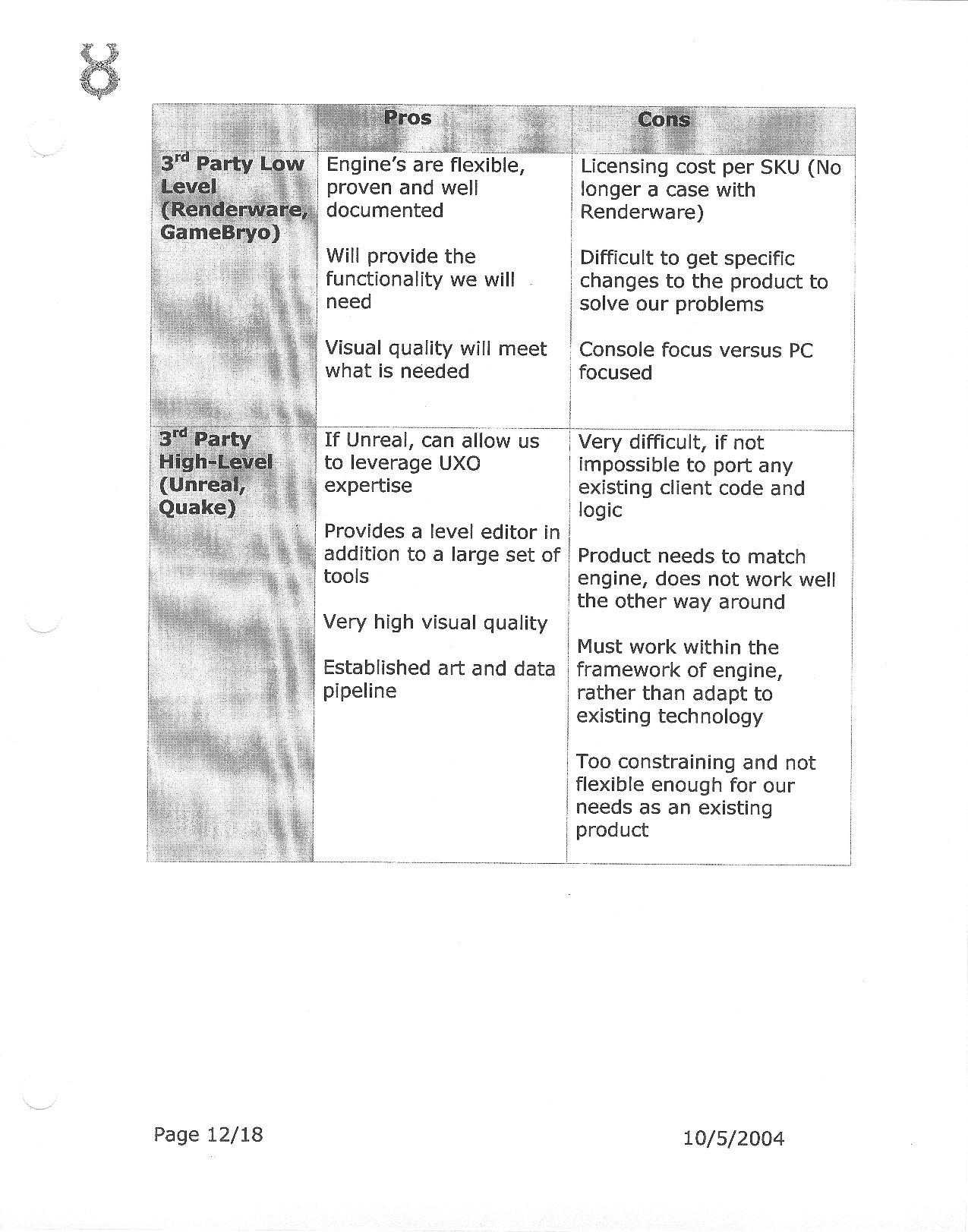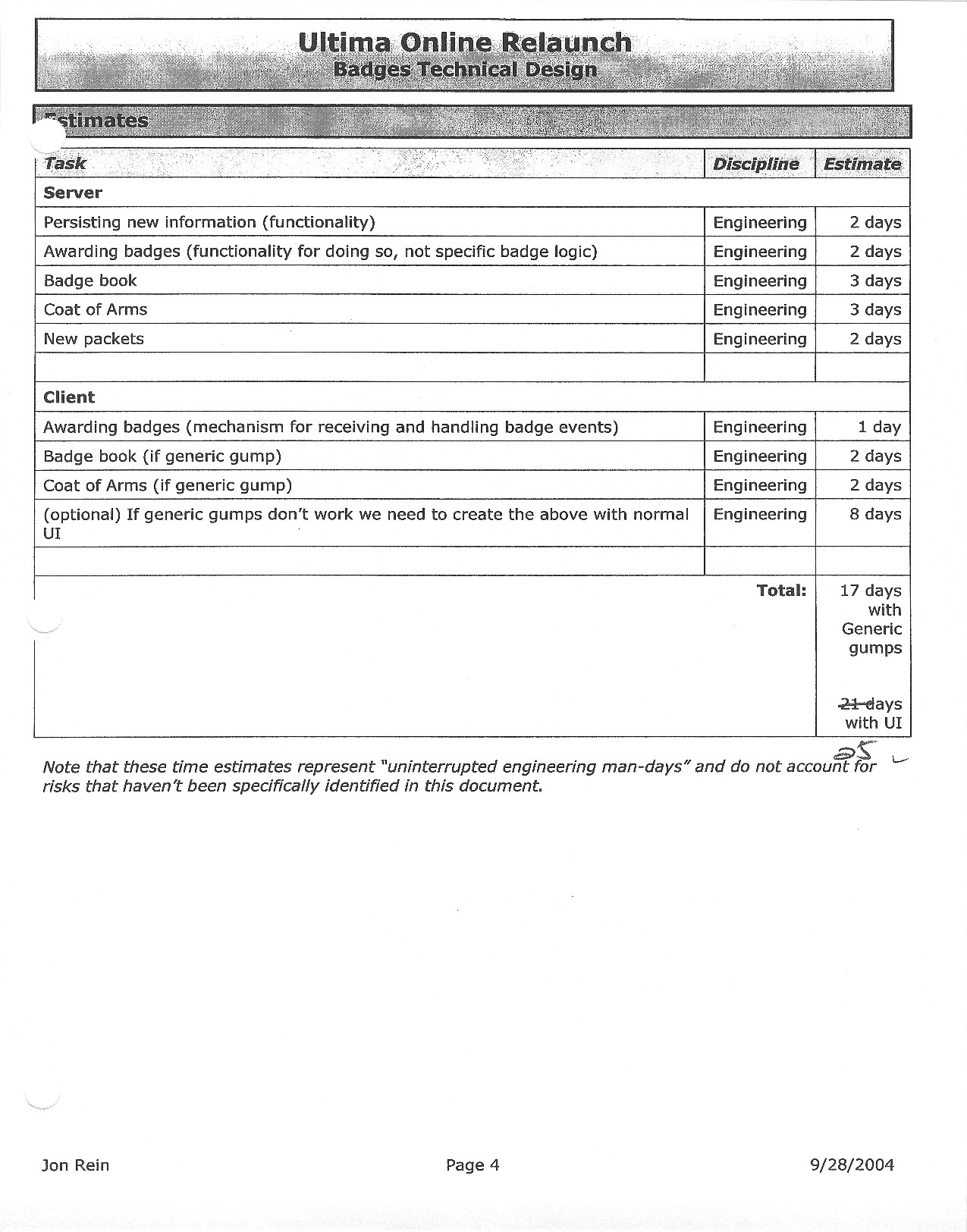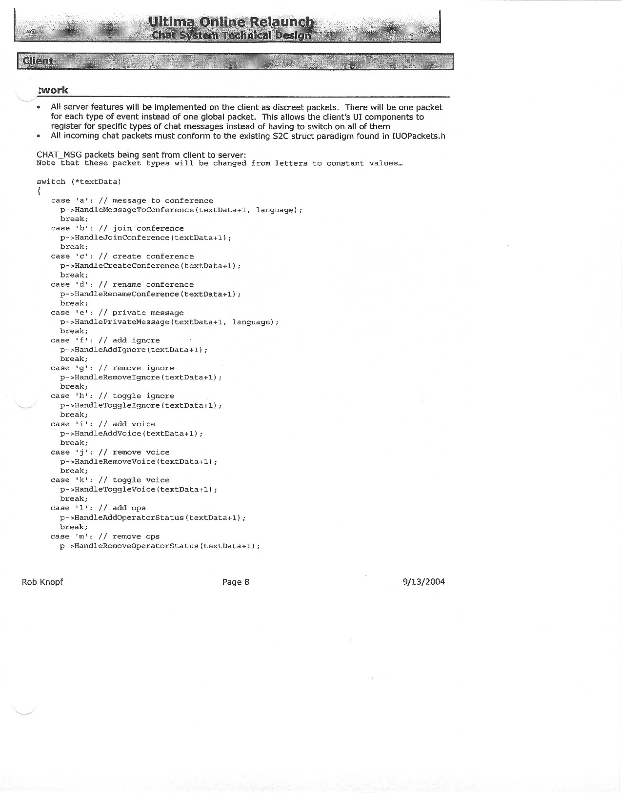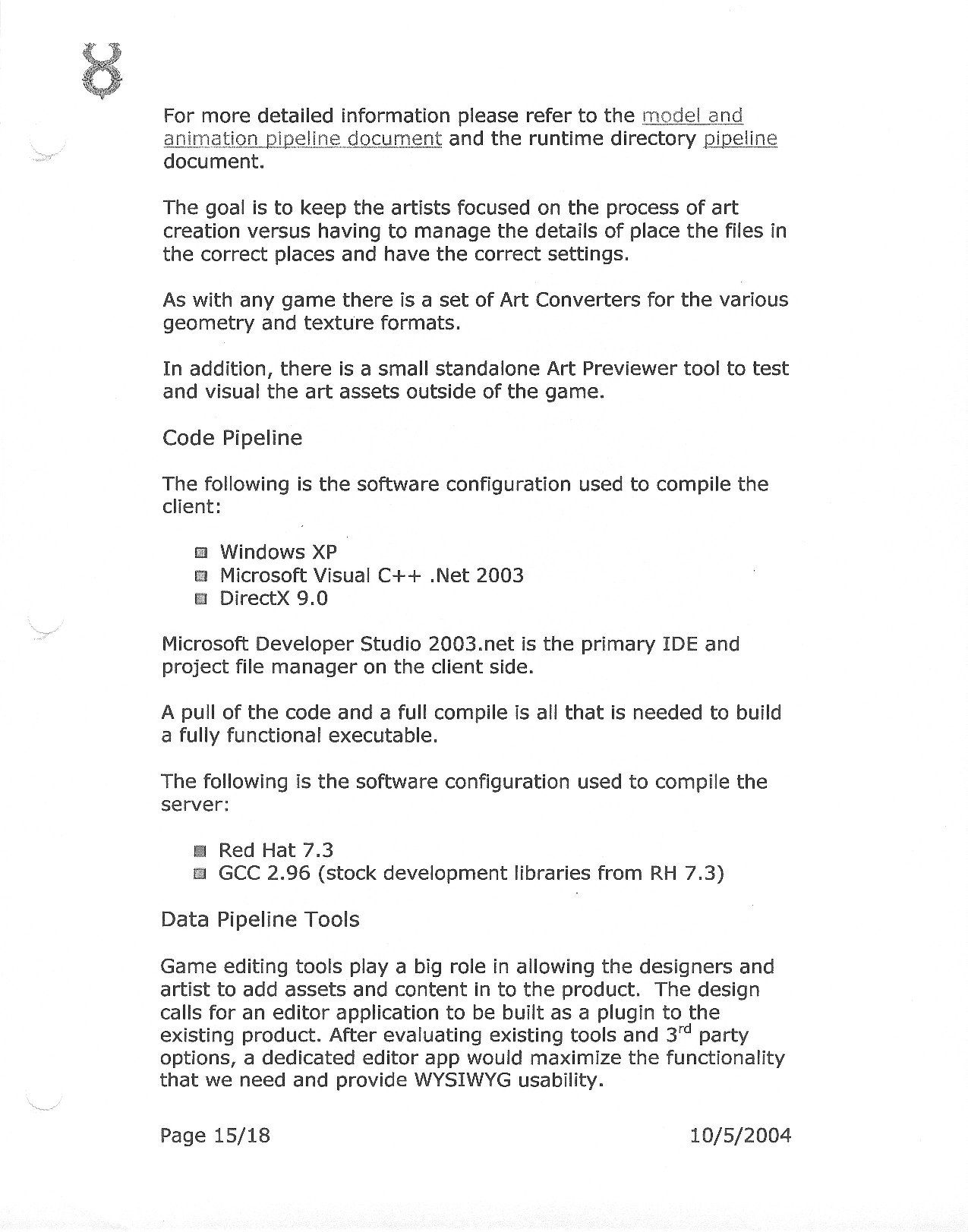 This document is dense, and disucsses almost all the technical details that would have concerned the Ultima Online 2 development team. Early in the document, for example, a comparison of different game engine technologies is performed, and it would appear that Maxis’ GZ engine (which powered The Sims 2, for example) had been chosen as the engine that would power the game. (The Renderware engine was chosen as a backup plan.) Later on in the document, the intentory UI and paperdolling system get discussed.