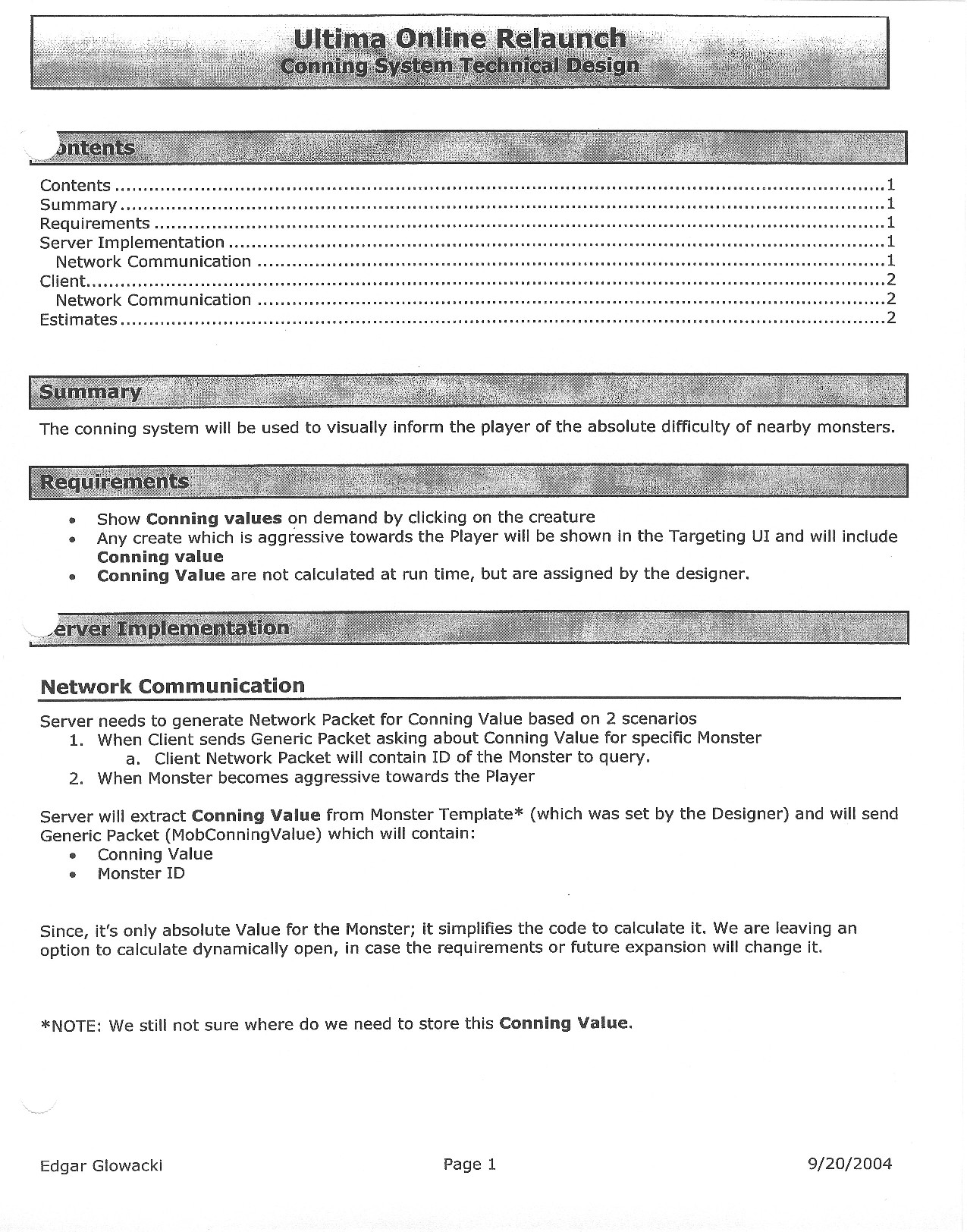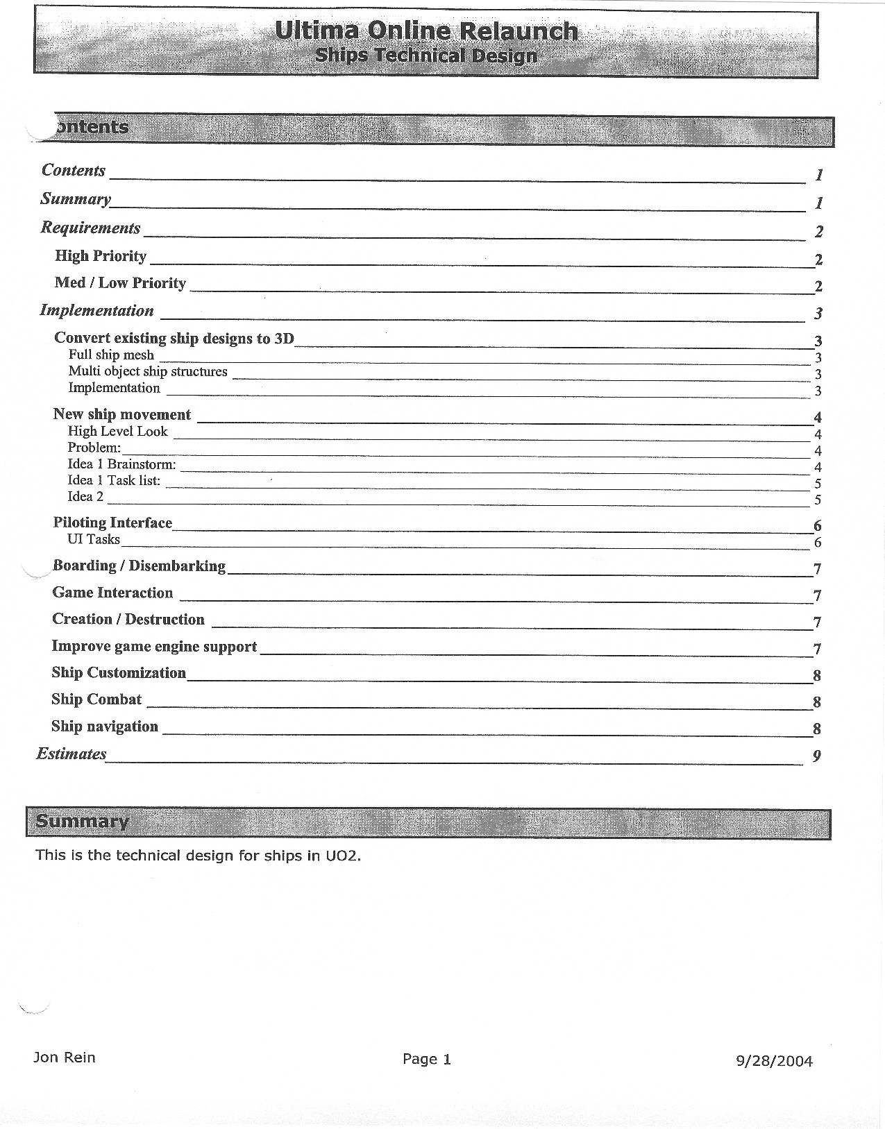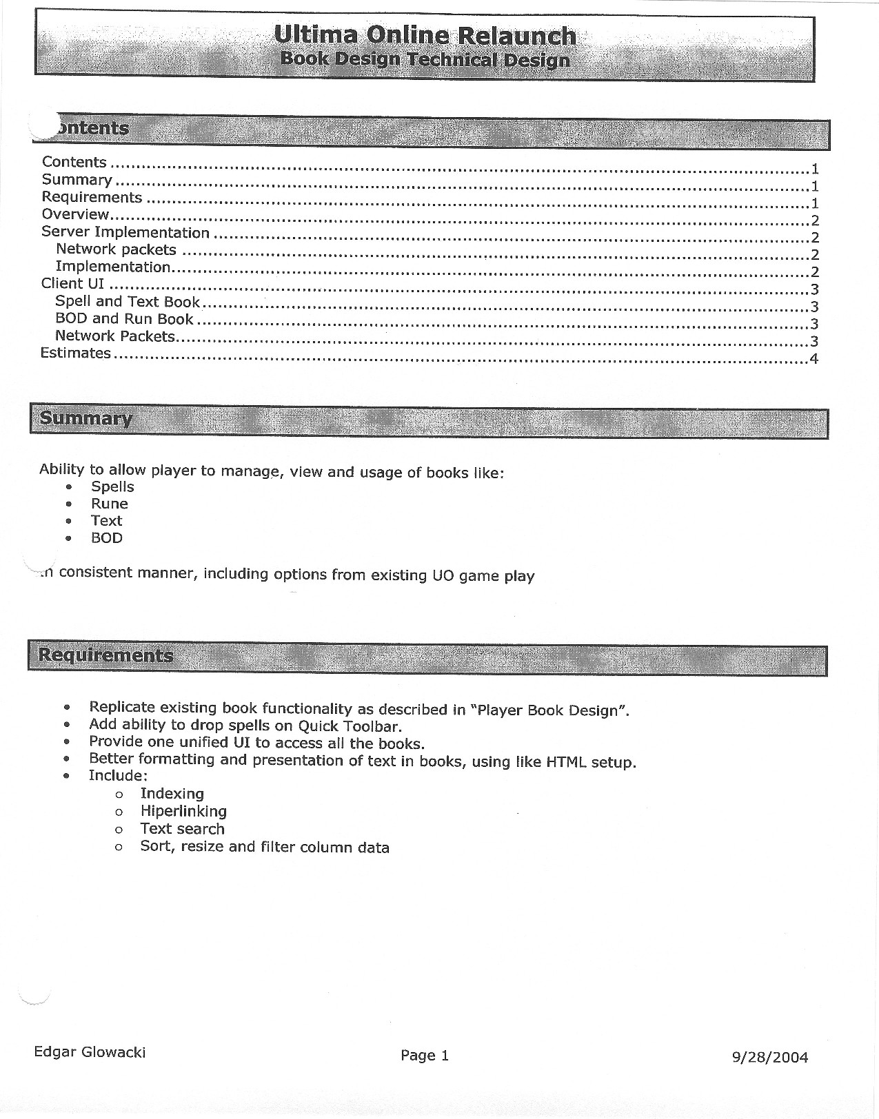 Thus, enjoy! Pull up each page of the document and pore over it; ferret out every little detail that you can. This attempt at creating Ultima Online 2 was likely the last such attempt made, and you will likely not get a clearer understanding of just what Origin (and then EA) were aiming for with it.