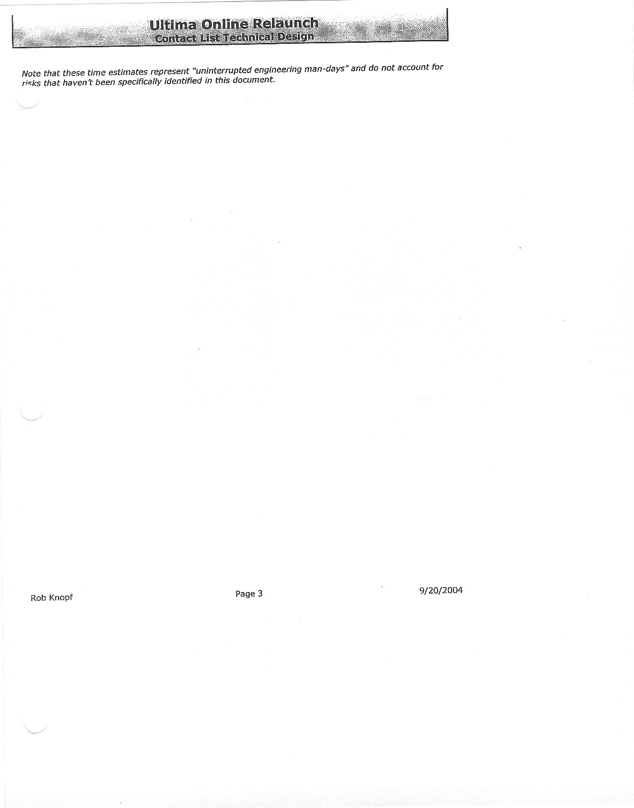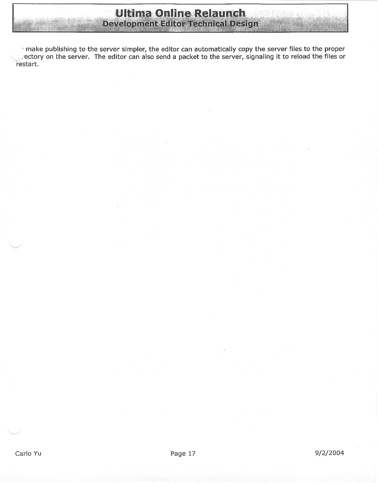 […] celebrate the 9th anniversary of this website and its predecessor, Ultima Aiera, we’ve added a new collection to the Origin Gallery: scans of a lengthy technical design document produced for what was probably the last attempt at […]